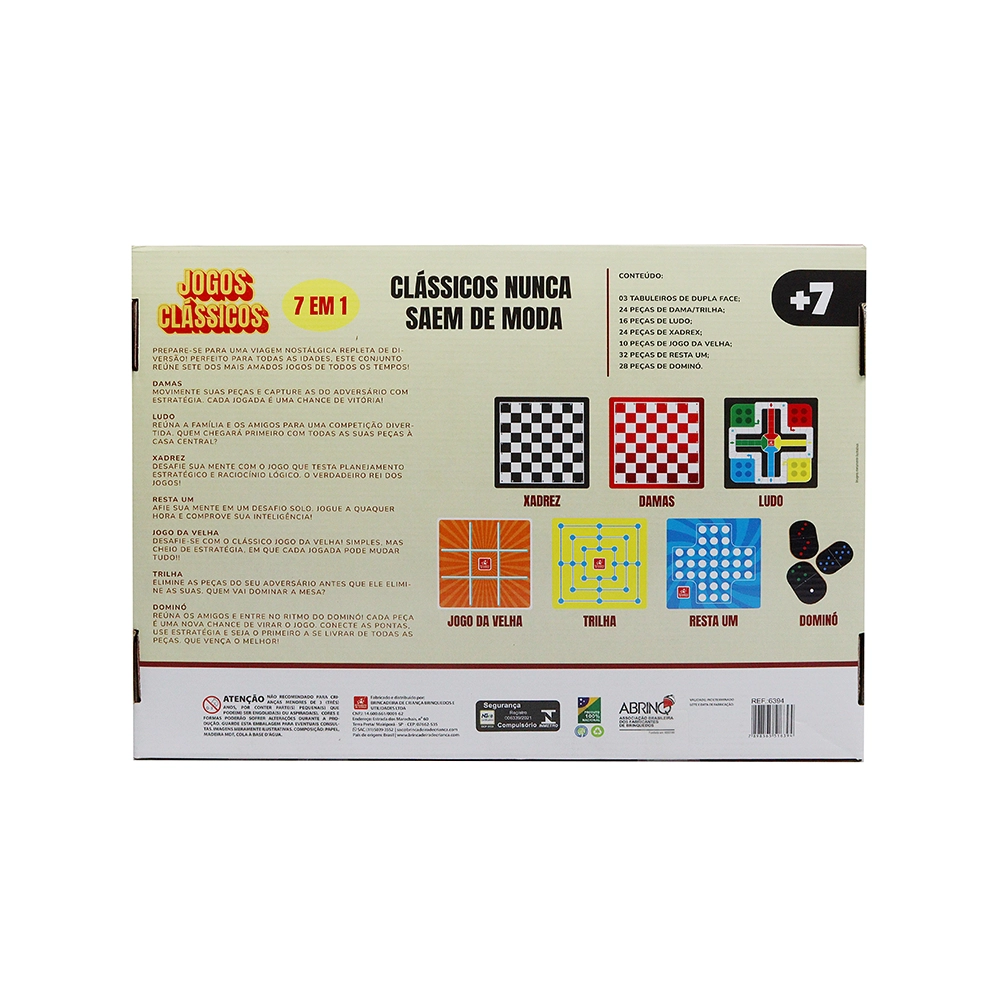 Uma excelente opção para presentear ou incrementar as noites de jogos em família. Desafie suas habilidades e aproveite momentos inesquecíveis com este incrível kit de Jogos Clássicos 7 em 1!
